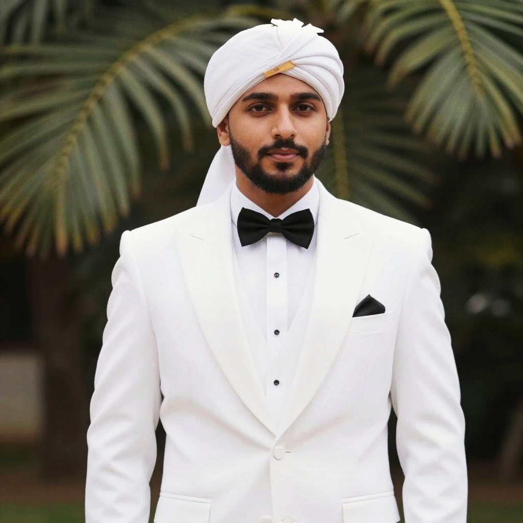Wedding Wear Man Summer, dressed in a white tuxedo and a white turban