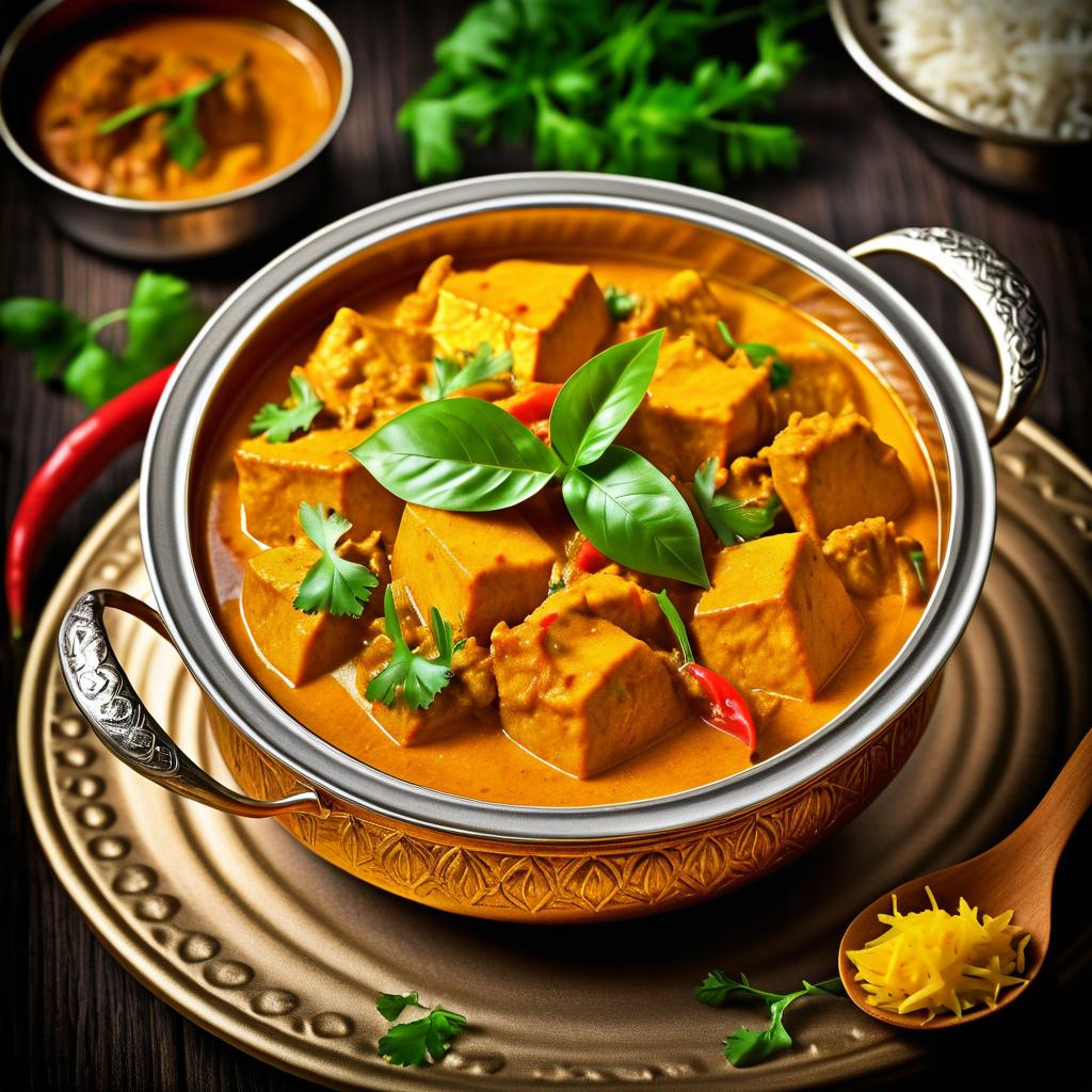 Macro gourmet photography of aromatic curry dish in HDR, professional quality with vibrant details.