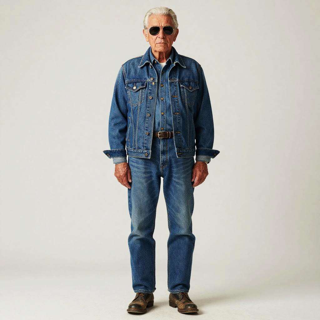 Teenage boy, short blond tousled hair, athletic build, denim on denim outfit, classic double denim style, denim vest, light denim jacket, denim shorts, white canvas shoes, snapback cap, Youthful, sporty, casual