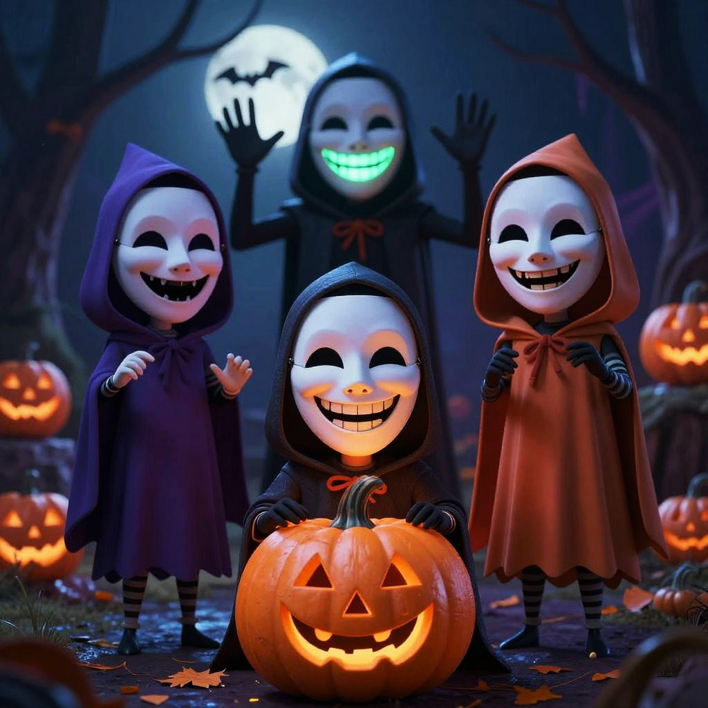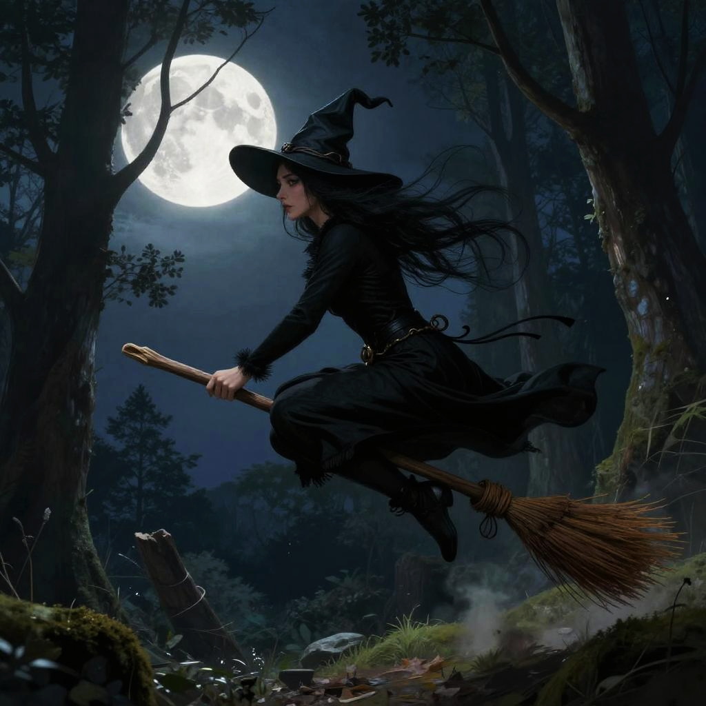 Surreal artistic portrayal of a black cat with glowing yellow eyes sitting on a cobblestone path in a misty graveyard at night. The scene includes silhouetted crosses, barren trees, flying bats, and a dark gothic church under a large full moon, evoking a mysterious and eerie atmosphere.