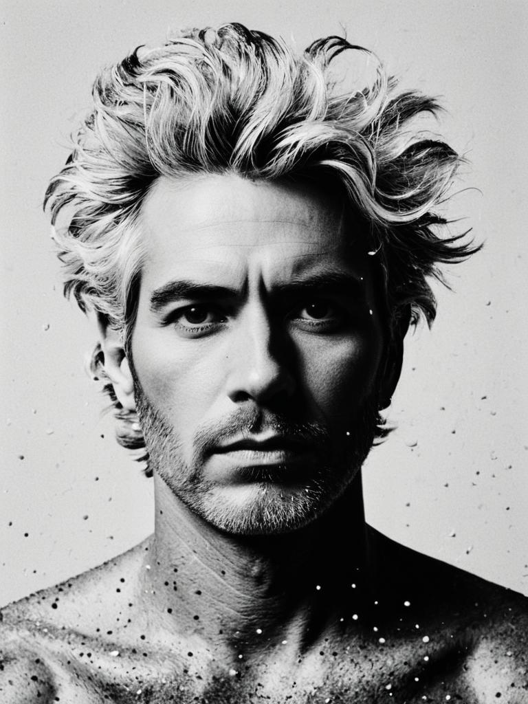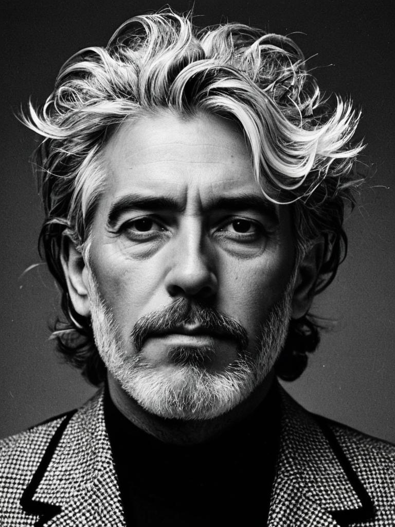 Man with Salt and Pepper Hair, photorealistic editorial glamour portrait