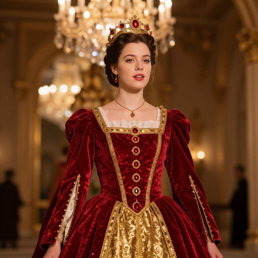 Make me royal portrait, a queen or king wearing luxurious silk robes, elaborate pearl necklaces, and an intricate jeweled crown, standing in an opulent royal chamber with grand windows filtering soft sunlight, hyperrealistic style with attention to fabric textures and light reflections.