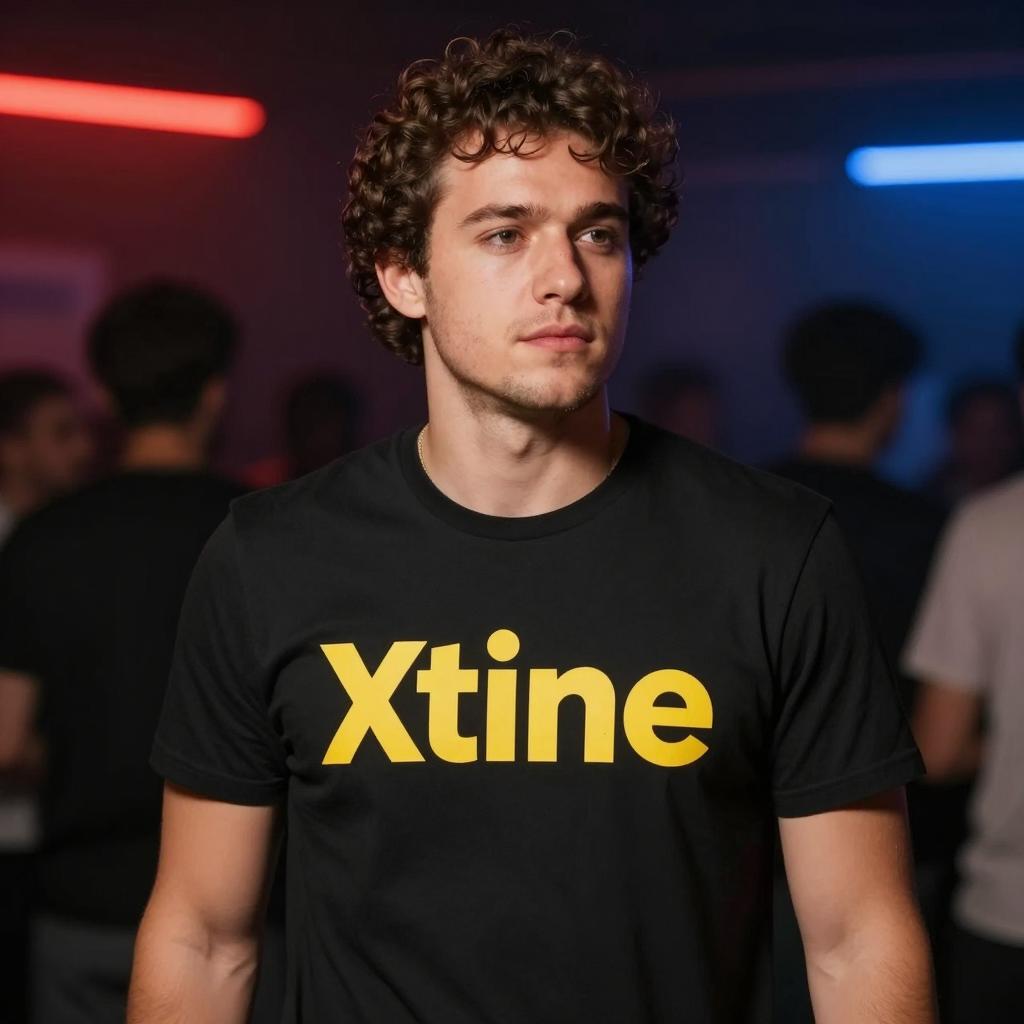 Young Man Wearing Xtine T-Shirt at Nightclub