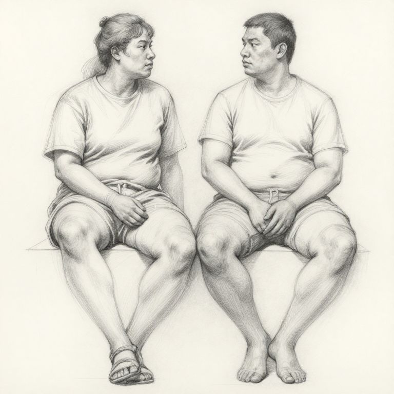 2 person drawing base rendering two diverse body types in relaxed poses, detailed yet soft pencil sketch style emphasizing emotion and connection, providing a sturdy groundwork for adding clothing, facial features, and accessories.