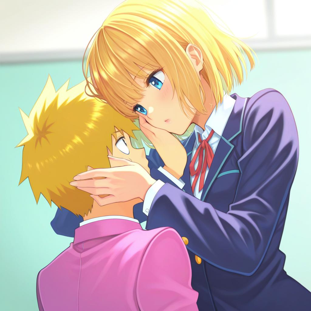 Hanazawa teruki, mob psycho 100, 1boy, blue eyes, short hair, blonde hair, school uniform, collared shirt, school uniform, long sleeves, blazer, by artist jj (ssspulse), illustrious