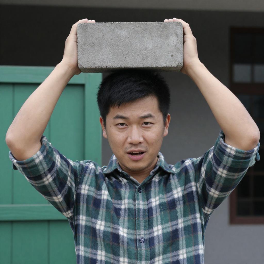 Man with Bloodied Arms Holding Broken Brick on Phone