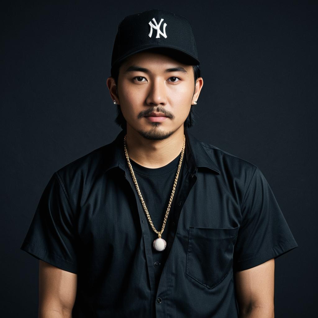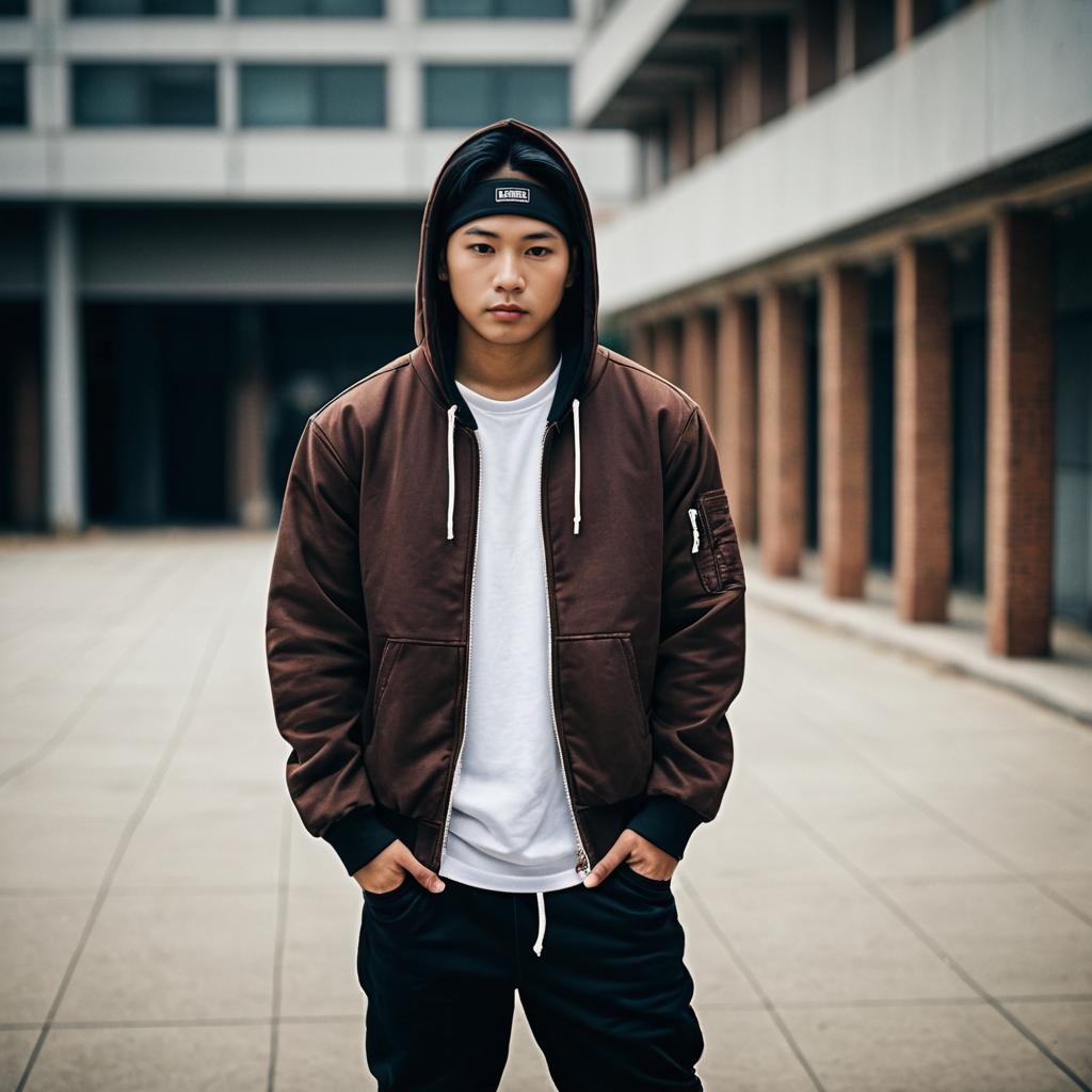 Cinematic portrait of Japanese graffiti artist in urban street art alley bathed in neon night light, Fujifilm emulation, vibrant colors, 4K ultra-realistic detail.
