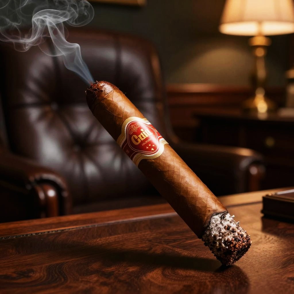 Lit Cigar on Wooden Desk in Elegant Office