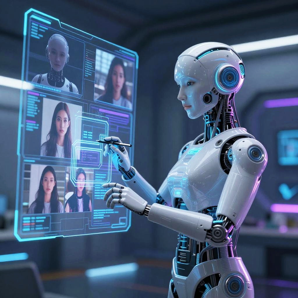 Ai that can alter images, sci-fi scene of a holographic AI assistant editing and morphing pictures in real time, surrounded by floating, translucent screens displaying layered image edits, neon blue and purple hues, highly detailed futuristic environment