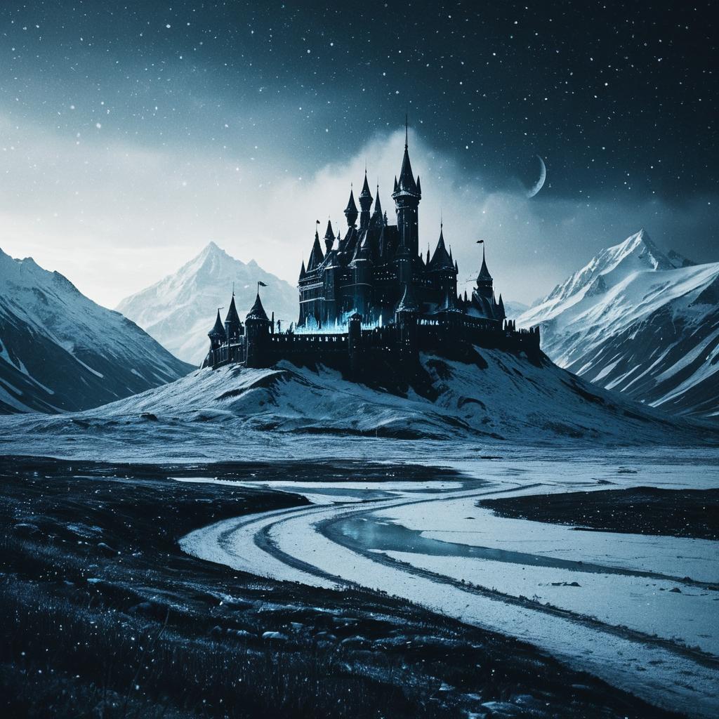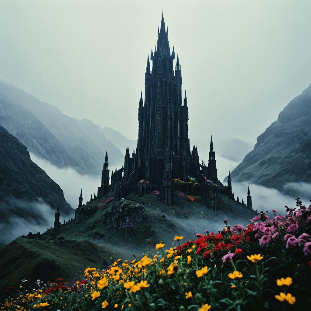 Epic Fantasy Fortress in Eerie Mist