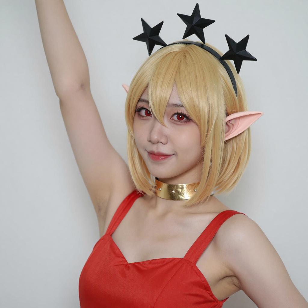 Blonde Elf Cosplayer in Red Outfit
