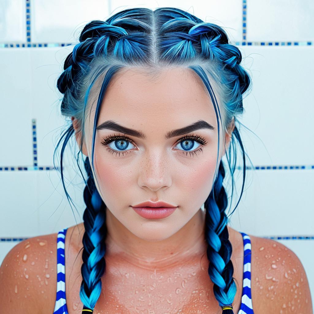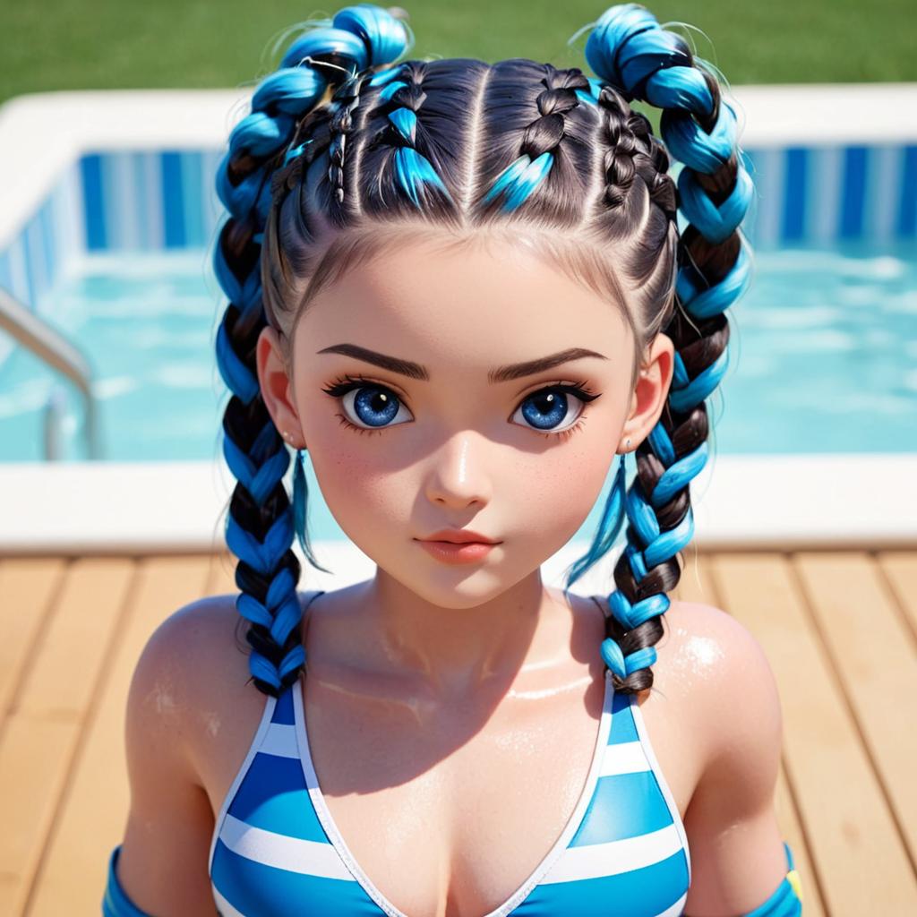 1girl, cute, frown, Bathing Suit, blue eyes, streaked hair, quad braids