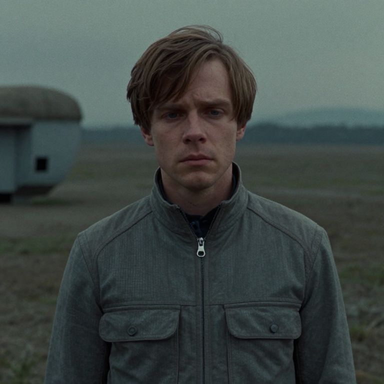 Mournful still from a movie directed by wes anderson, 2040s scify, cinemascope, photorealistic, film grain,