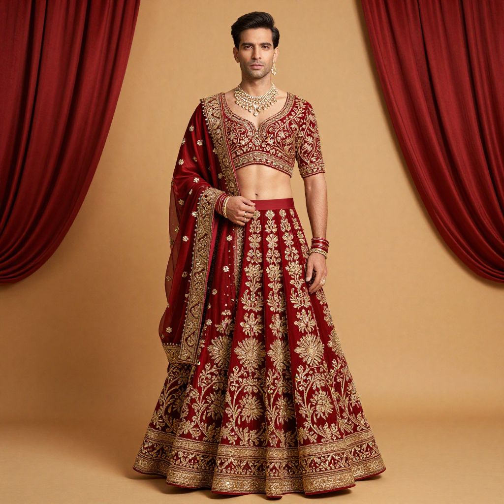 Man Costume Wedding Dress, a man in a red and gold indian wedding outfit