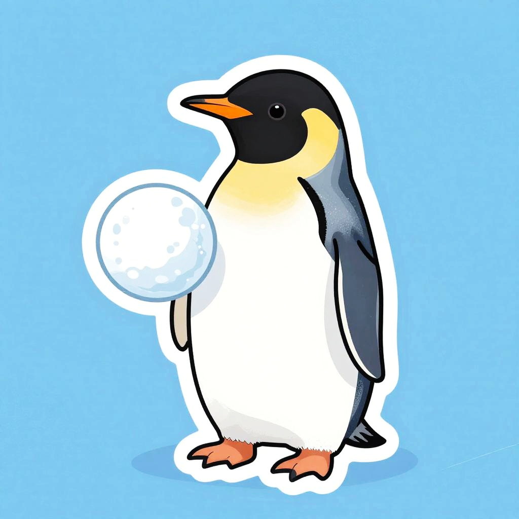 Cut sticker depicting the penguin holding the snowball, a solid icy blue background