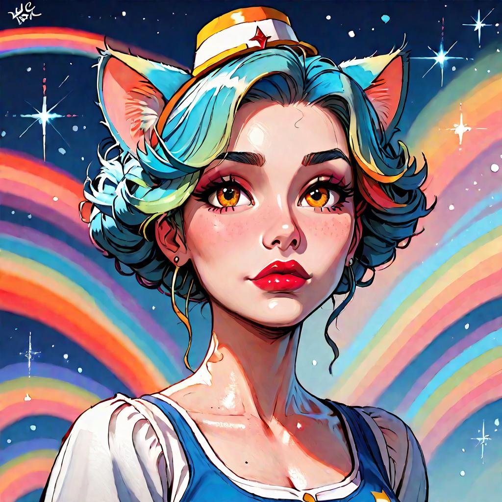 A kitten wearing a tiny leprechaun hat, nestled among clovers, with a rainbow softly glowing in the background., illustration, 3d, cartoon, high resolution, high quality, detailed, masterpiece, hdr, sharp, [Watercolor style], [ sassy style], score_9, score_8_up, score_7_up, score_6_up, amazing, beautiful, breathtaking, astonishing, brilliant, incredible