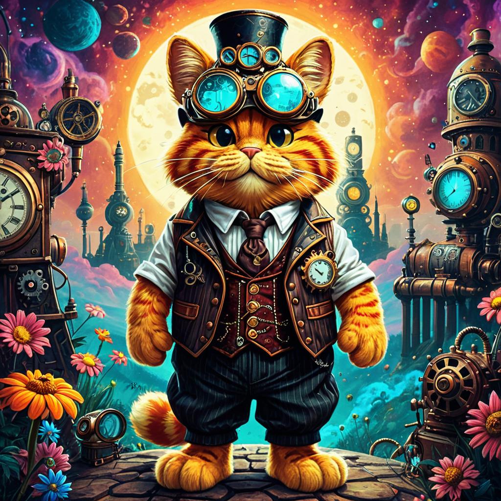Steampunk Garfield Cat in Psychedelic Dreamscape