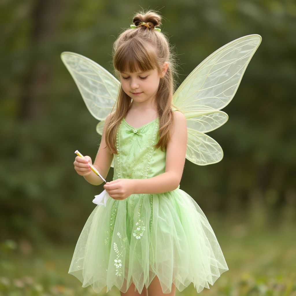 "Tinkerbell Dressing, image of a young girl dressed in a green fairy costume"