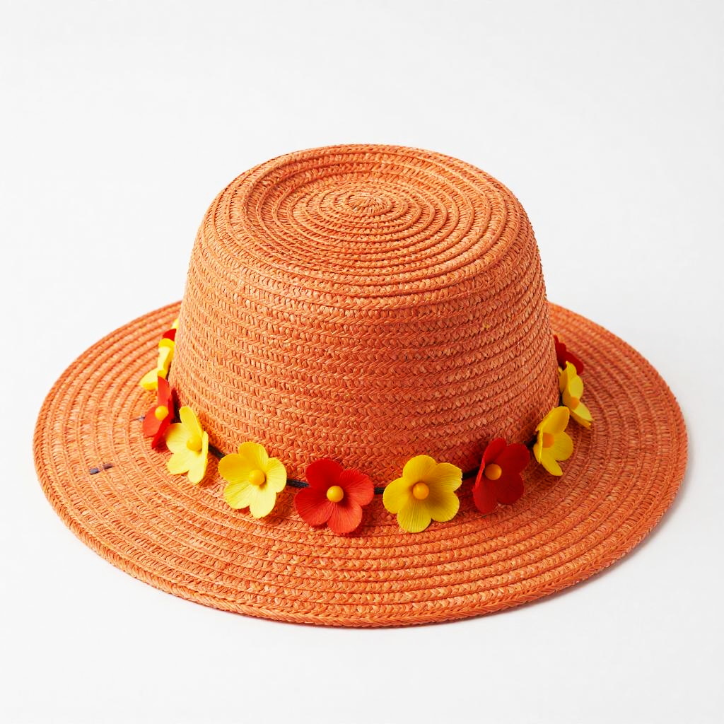 Vibrant Orange Straw Hat with Flowers