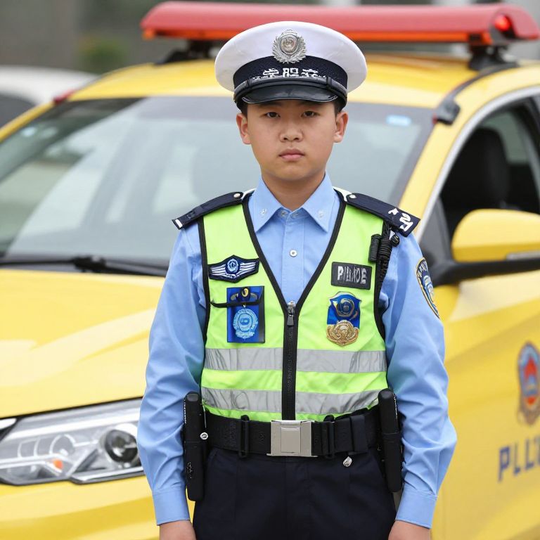 Police Officer Dress, boy in police uniform standing in front of a yellow car
