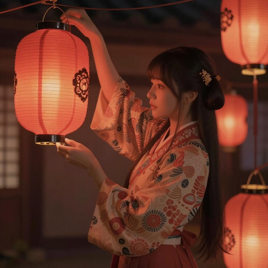 Anime Girl with Traditional Lantern