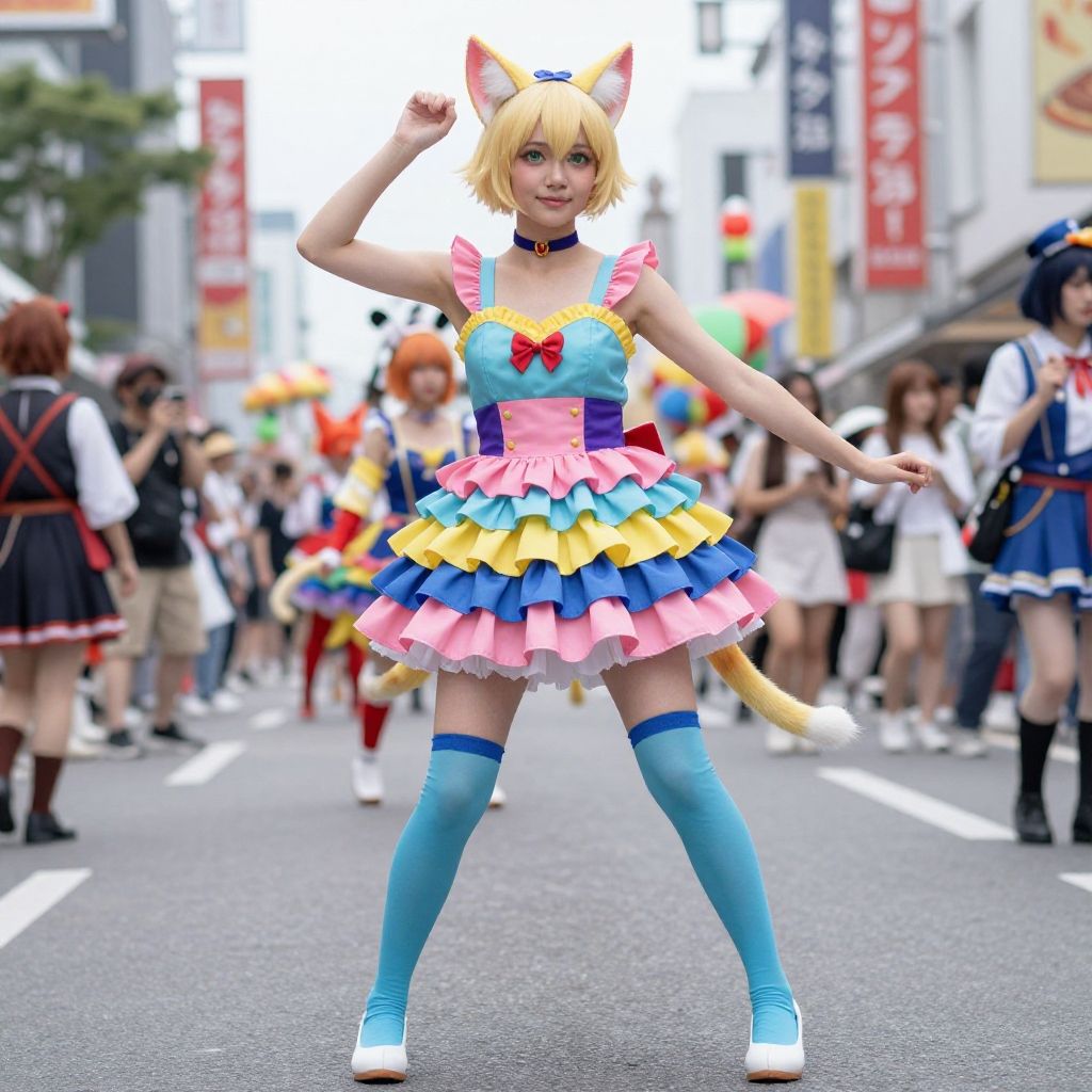 Vibrant Yokai Neko Dancing at Parade