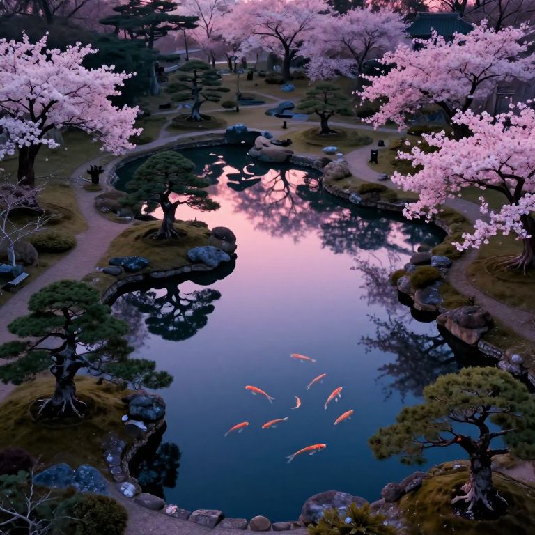 Surreal Japanese Garden at Dusk