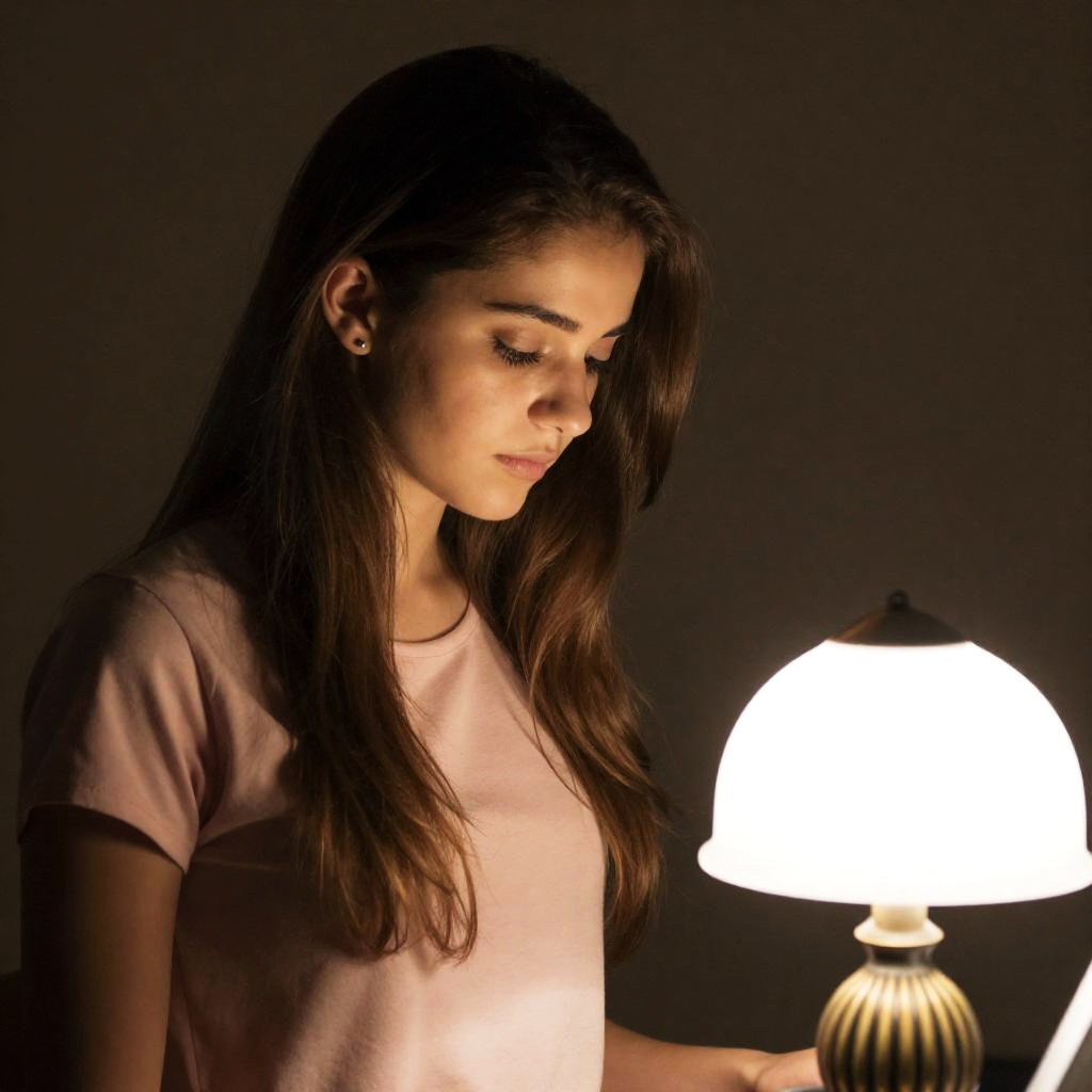 Young Woman in Dimly Lit Room