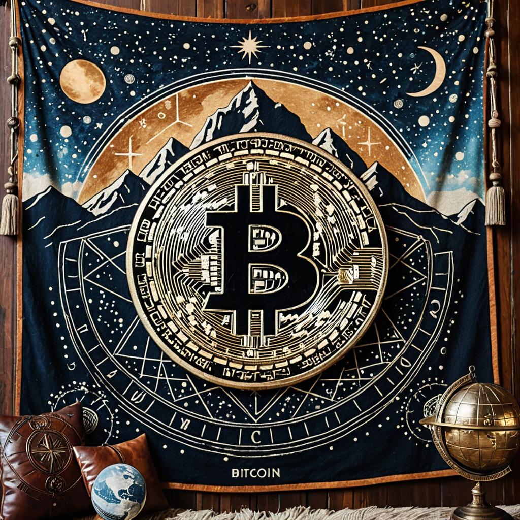 Bitcoin Logo Tapestry with Celestial Design