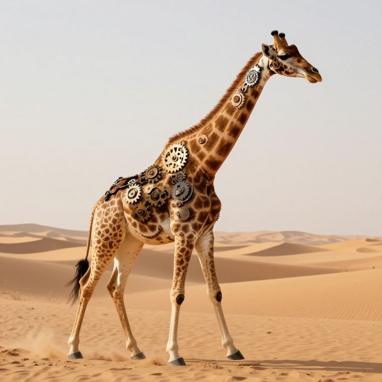 Surreal Mechanical Giraffe in Desert