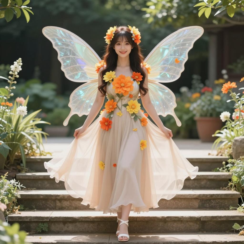 Christmas Fairy Woman in Floral Dress