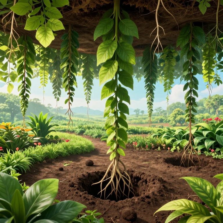 Gardens in this world are grown upside-down, with roots reaching skyward and leaves plunging deep into inverted soil.