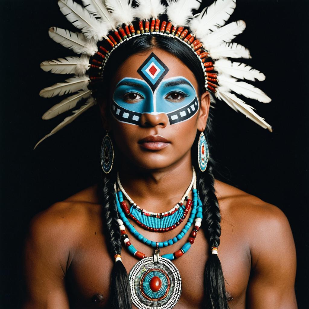 Native American Man with Traditional Face Paint and Headdress