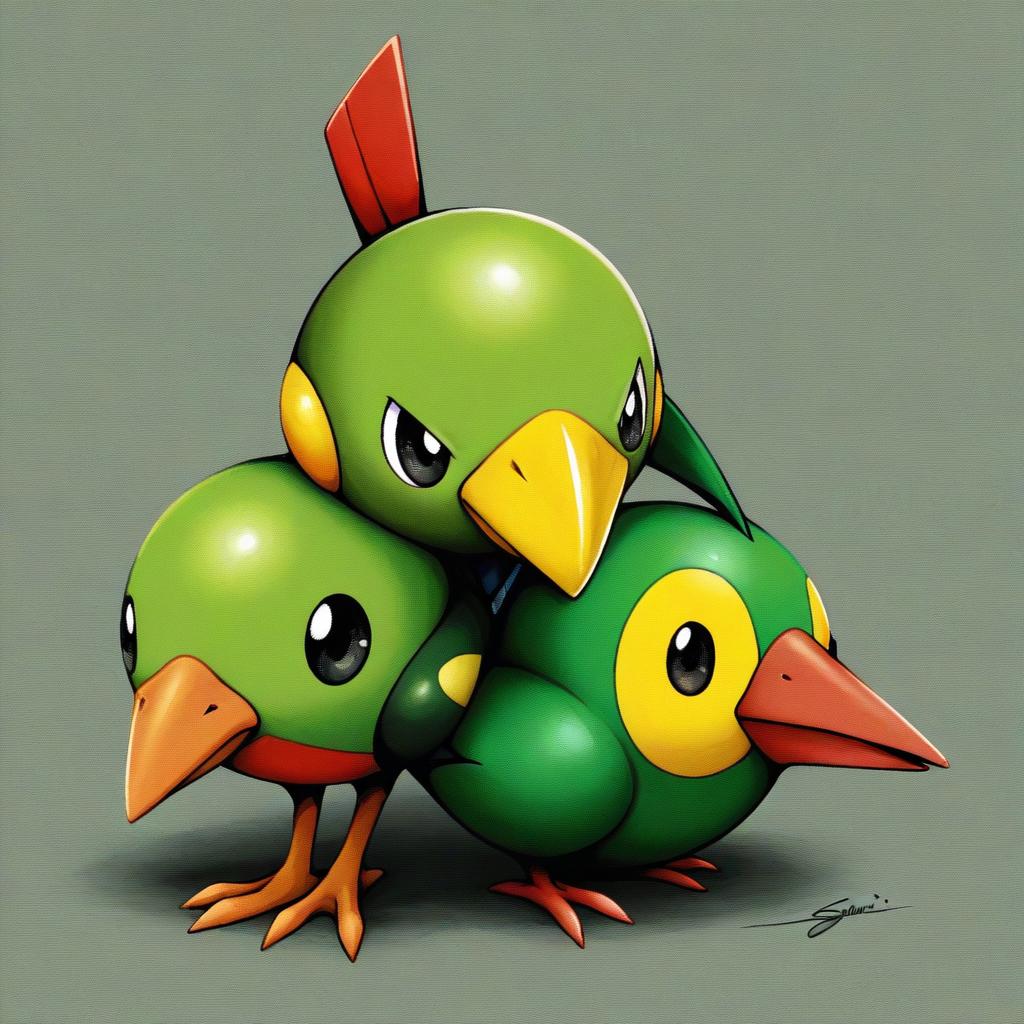 Illustration of Natu, pokemon in the style of Sanari (quarter iceshop)