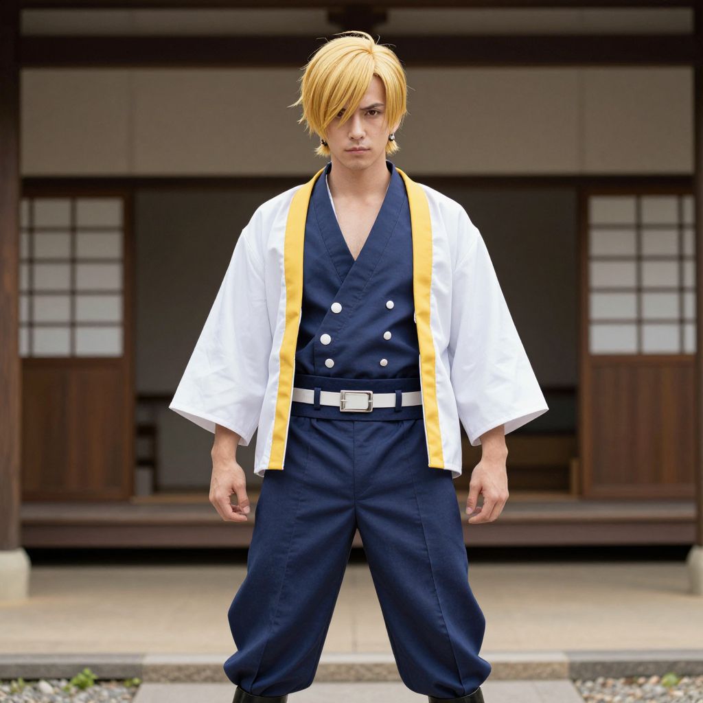 Sanji Wano Costume, man in traditional clothing standing in front of a building