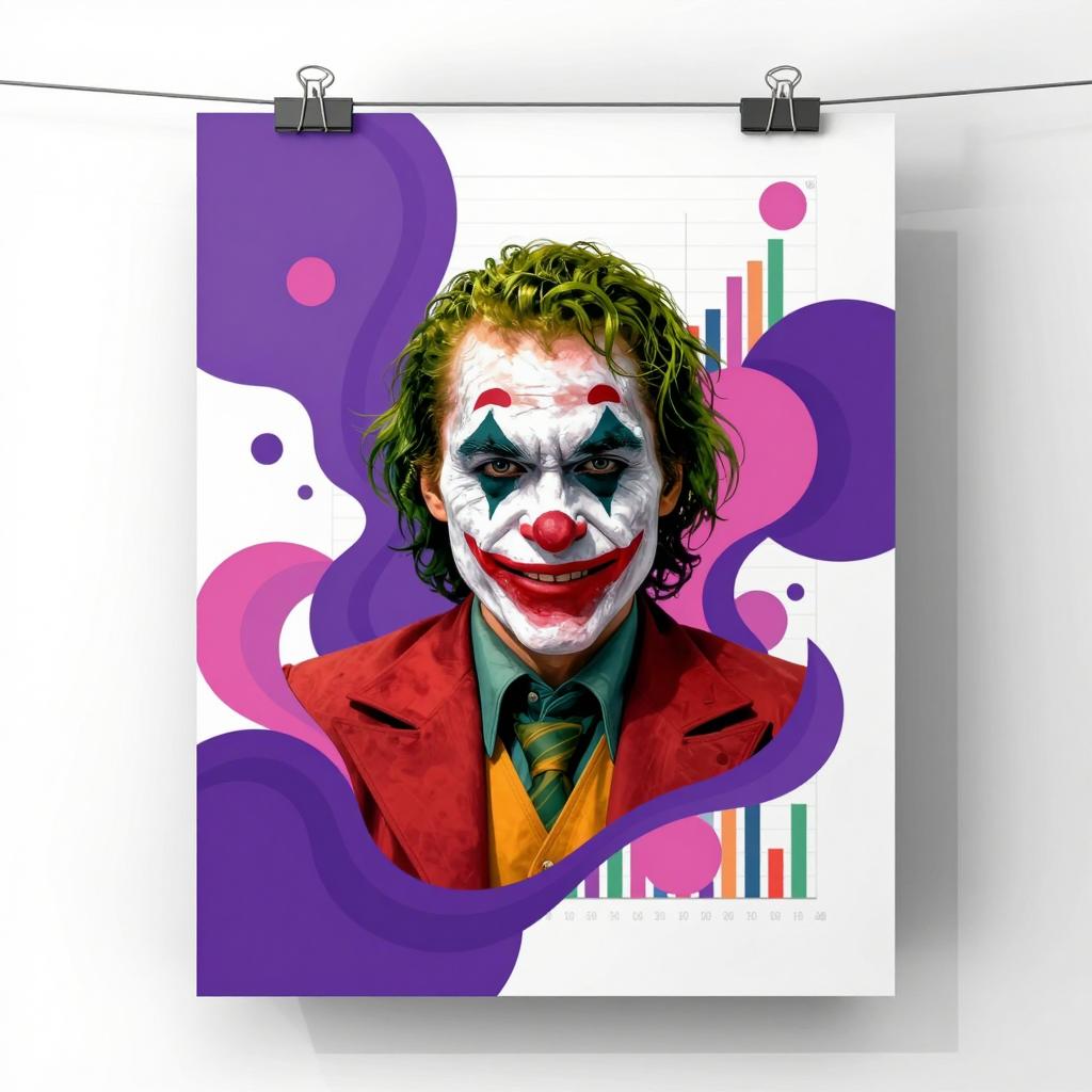 The Joker Design a cover pic that features a colorful abstract graphic, with swirling purple and pink shapes that evoke a sense of movement and energy. Use a chart or graph in the background to visually represent the data.,