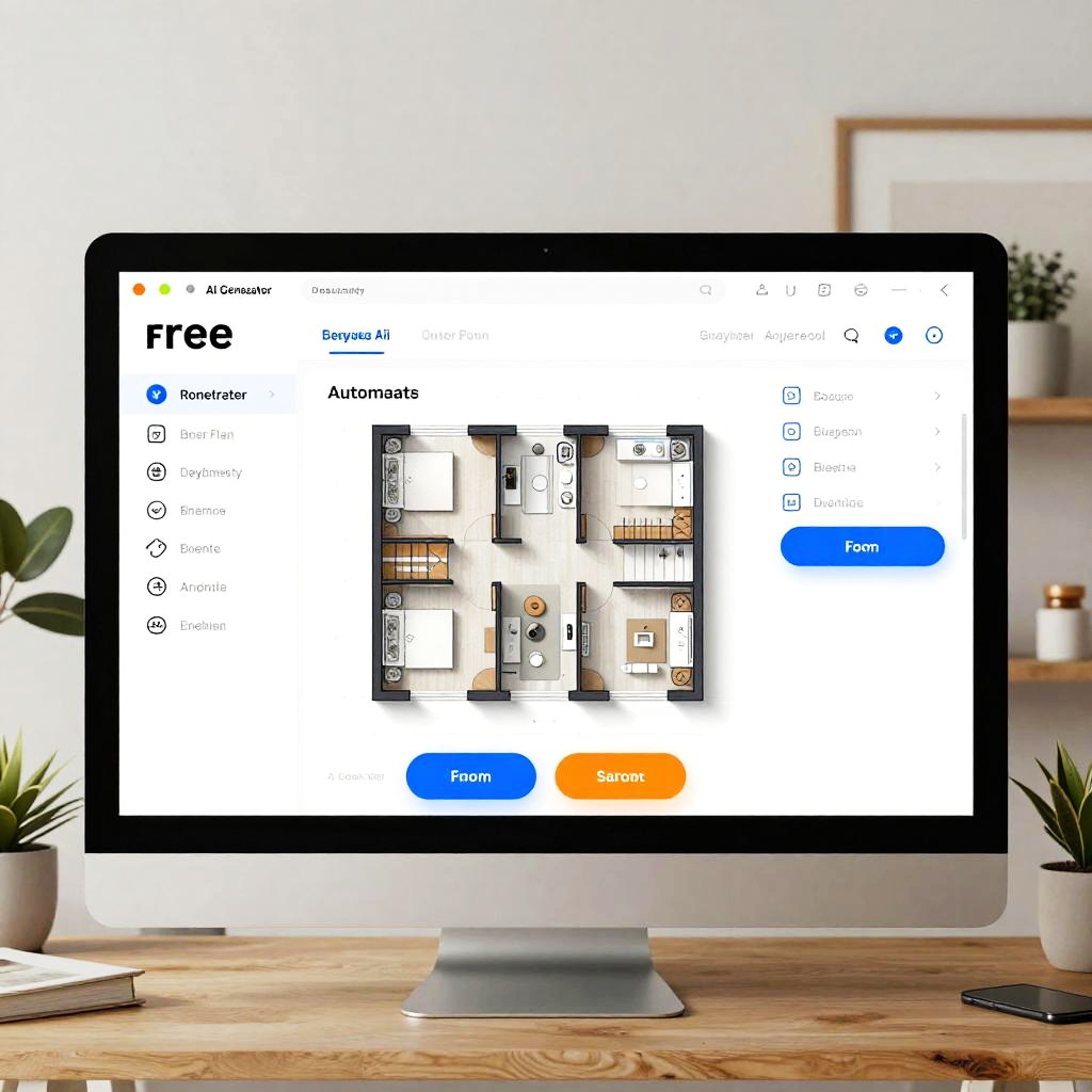 Floor plan ai generator free interface, vibrant and intuitive software dashboard showing automated room arrangement suggestions, user-friendly buttons and 3D model previews, bright ambient lighting, modern home office setup, crisp and clear design