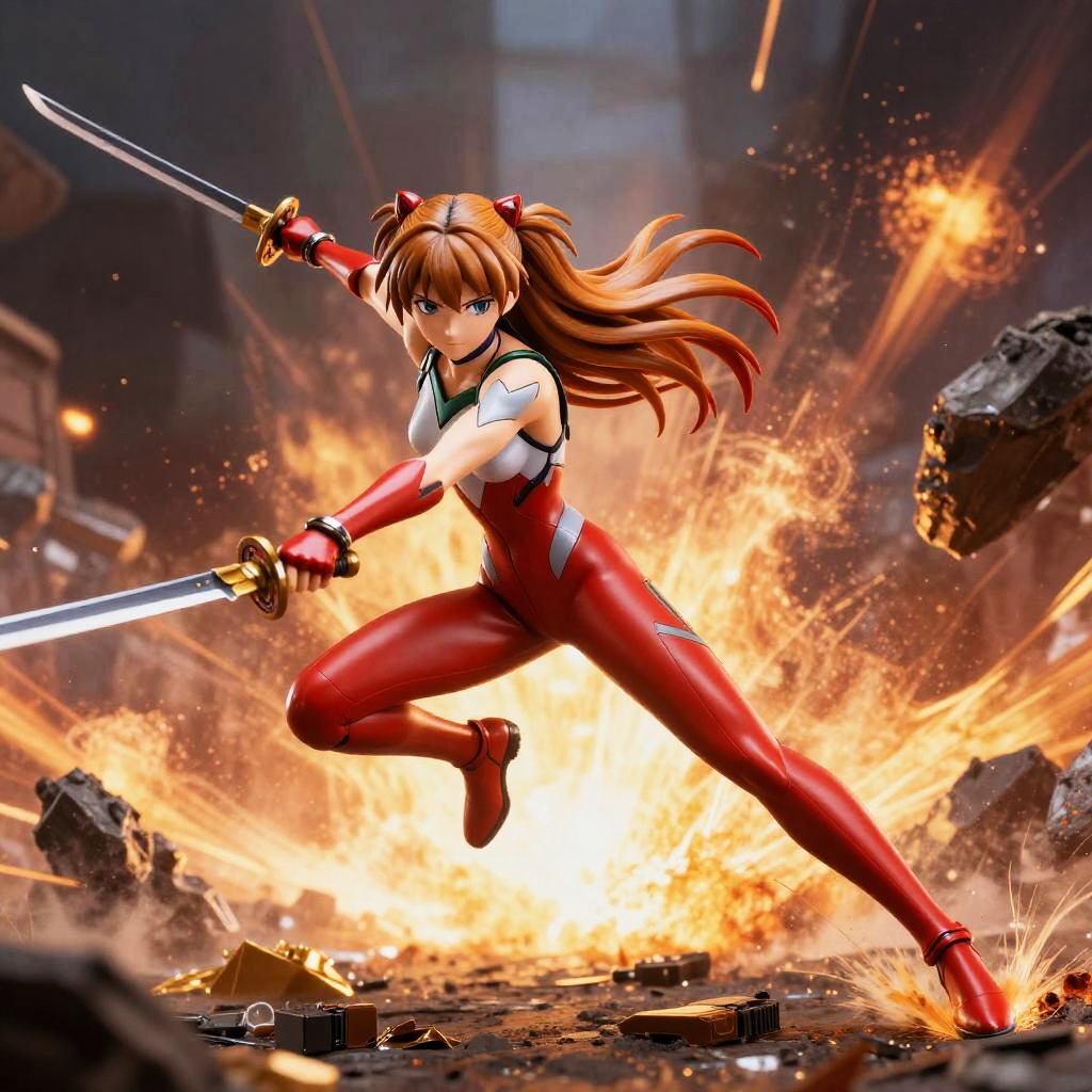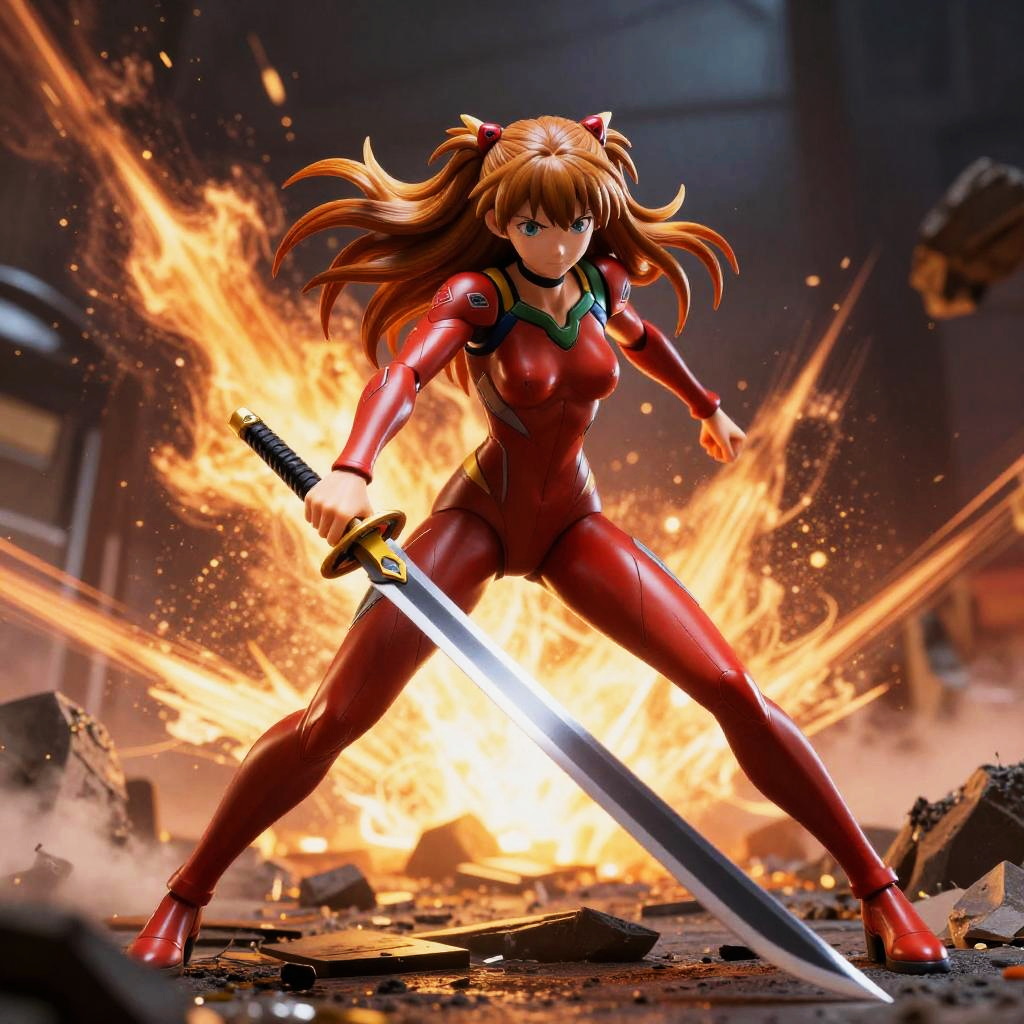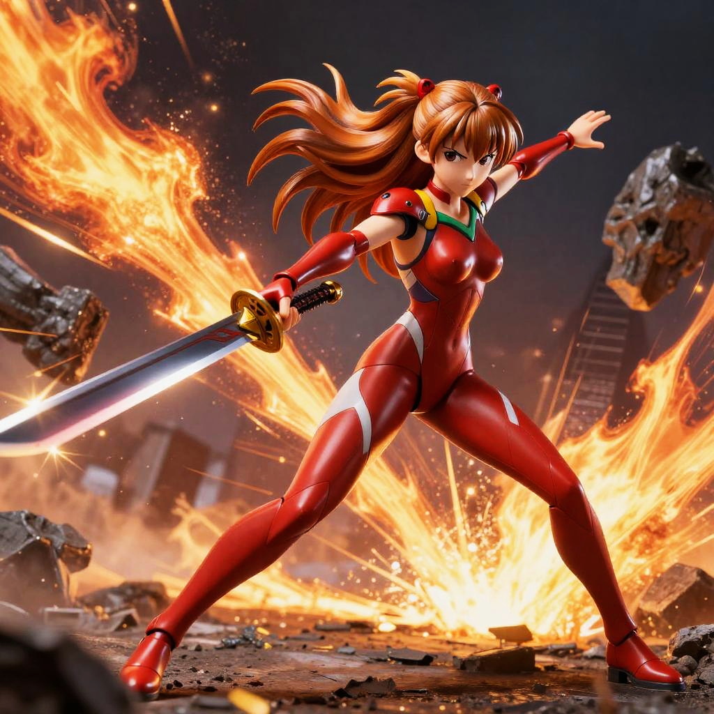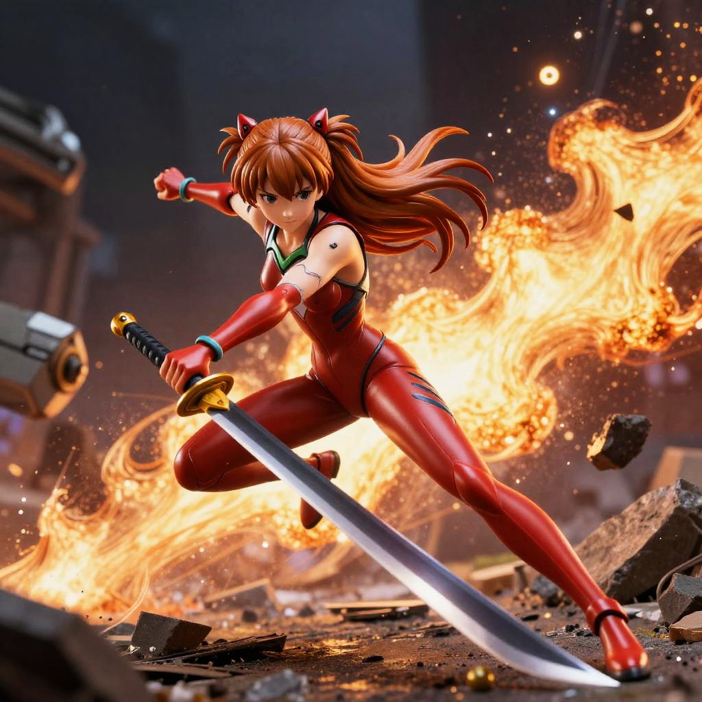 Asuka Langley Soryu Action Figure with Flaming Sword