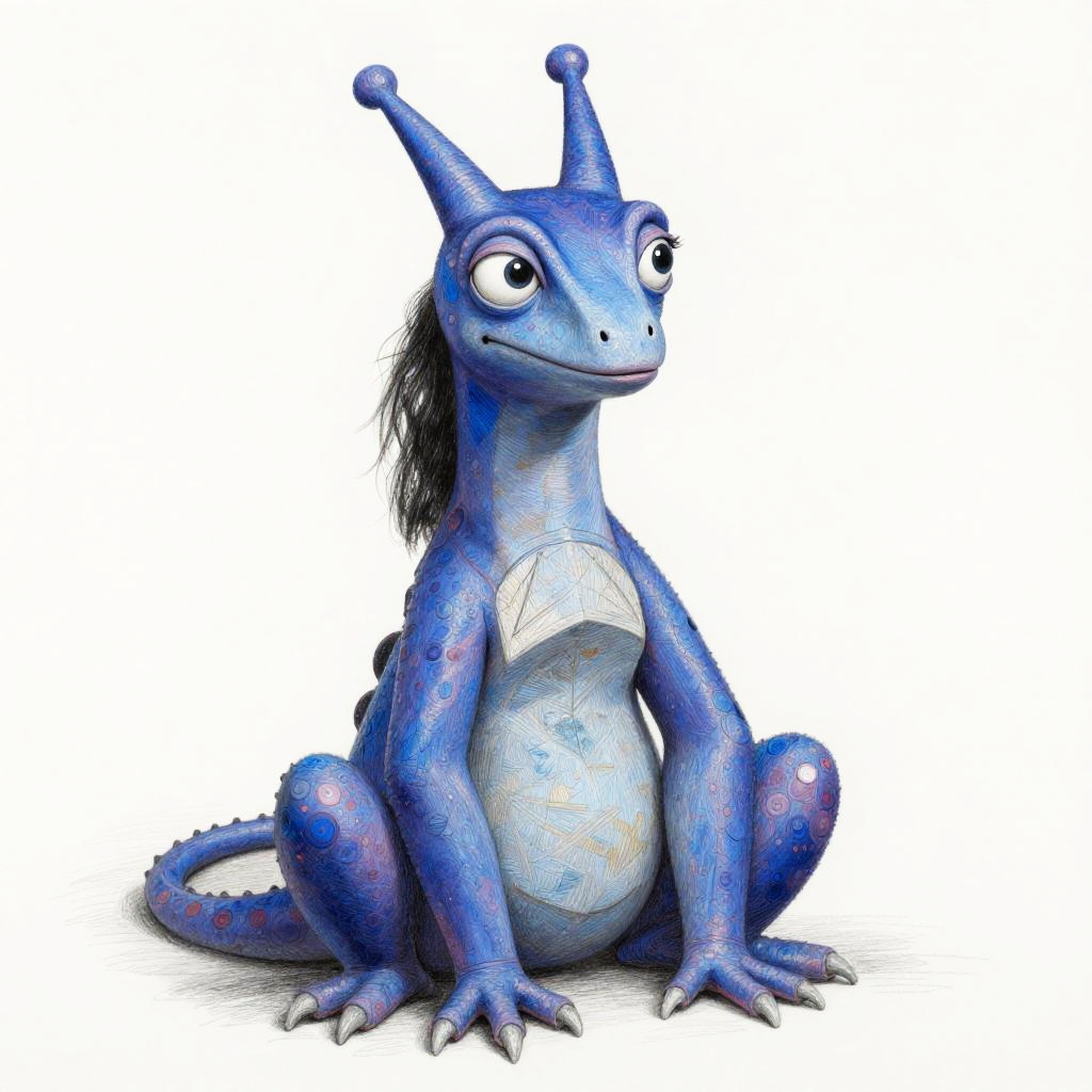 Mr. Salamander in the style of Alexander Jansson and Picasso, with assured features, clean lines, expressive face, vibrant colors, detailed and imaginative art, retouched with pencil by Caspar David Friedrich