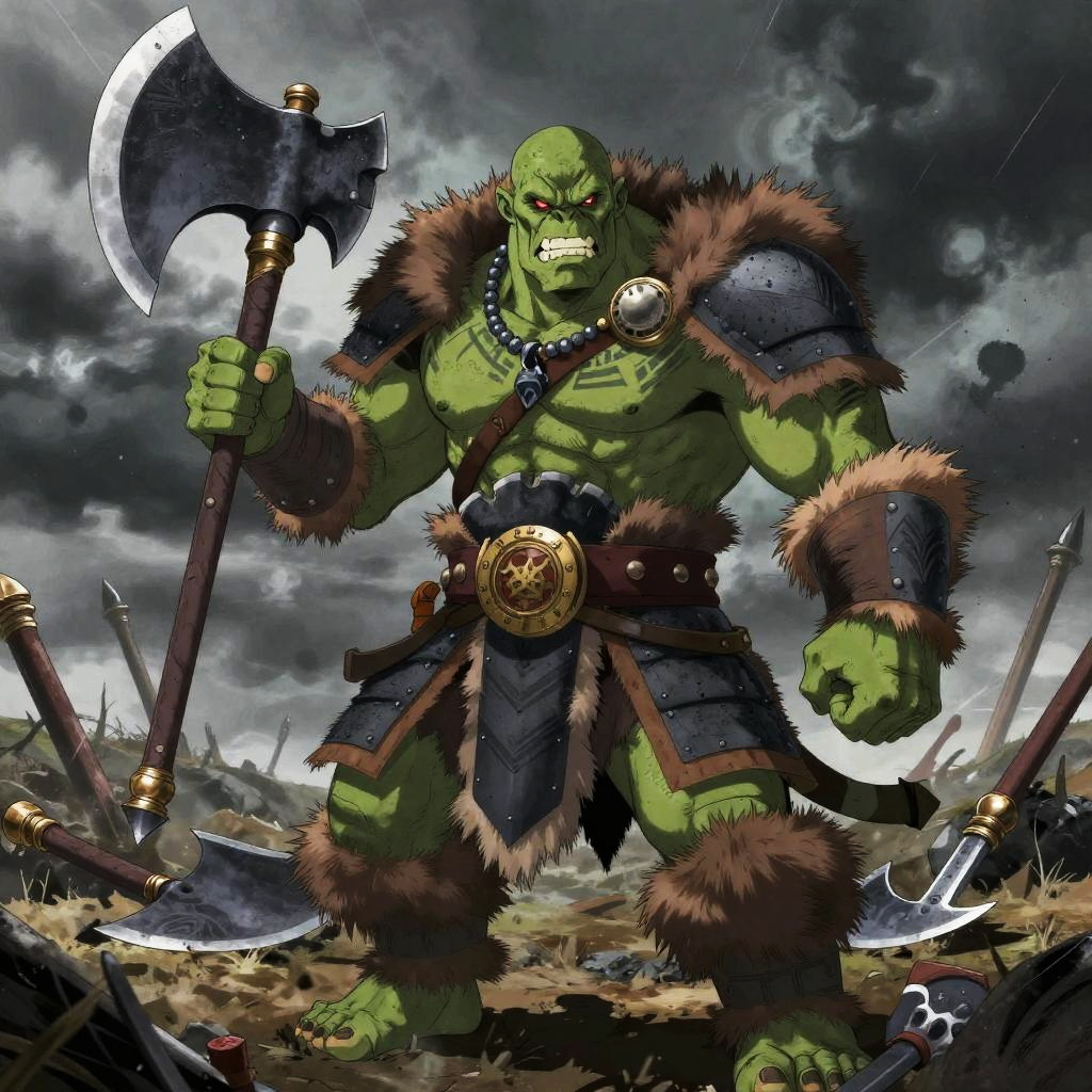 Fierce Orc Berserker in Stormy Battlefield
