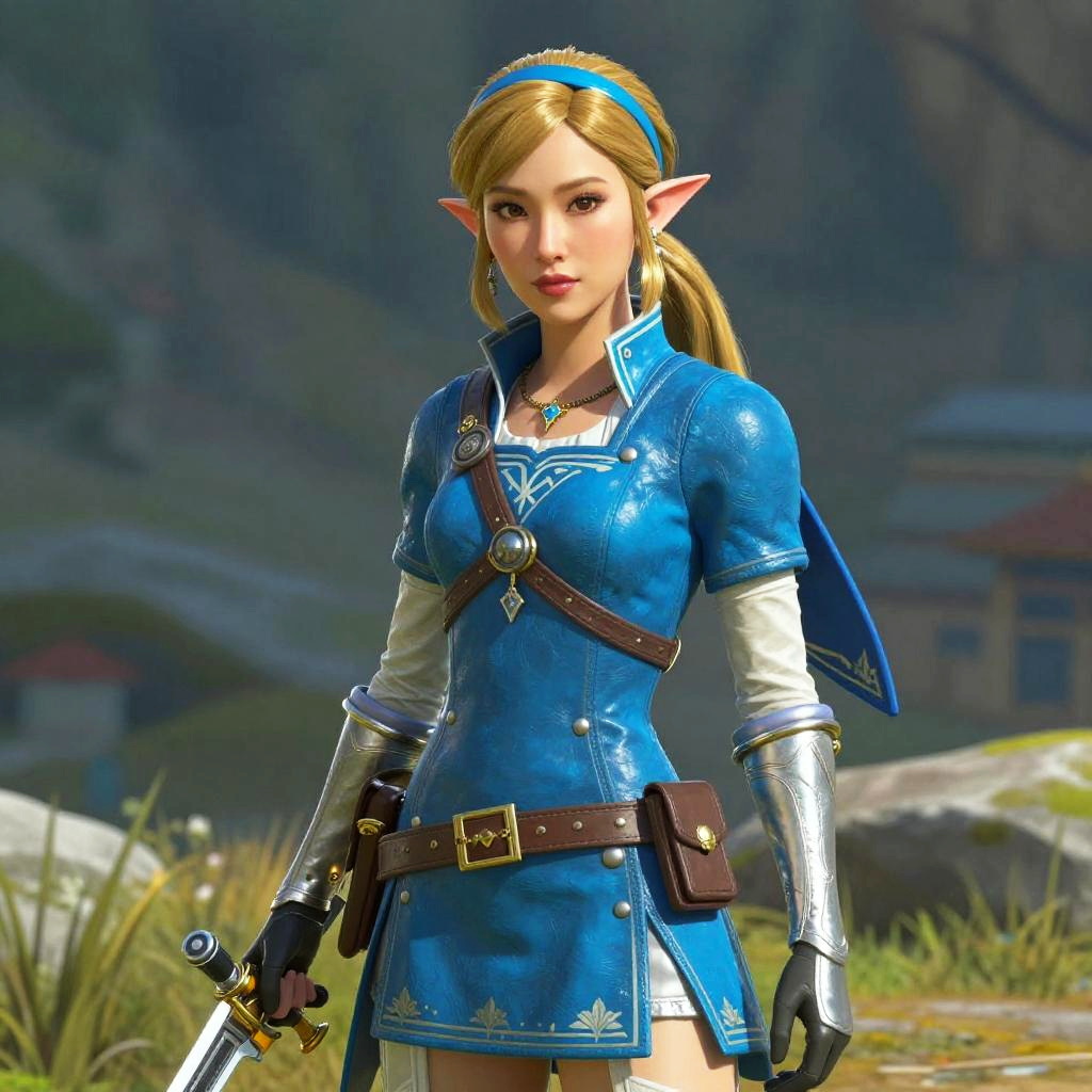 East Asian female spy, mysterious, Carmen Sandiego inspired, cerulean blue and silver, in the style of Legend of Zelda Breath of the Wild, highly detailed background, ultra-realistic, hyper-detailed 8k