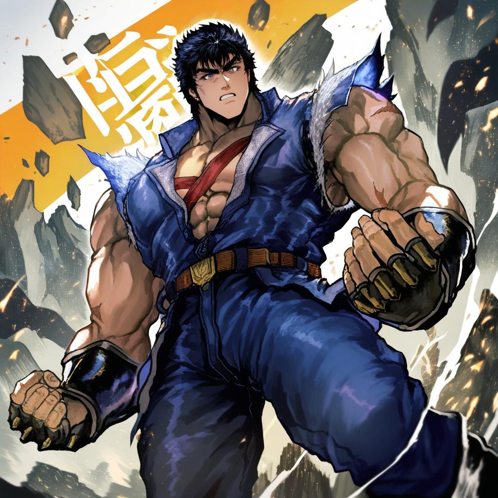 Illustration of Kenshiro, hokuto no ken in the style of Vyragami