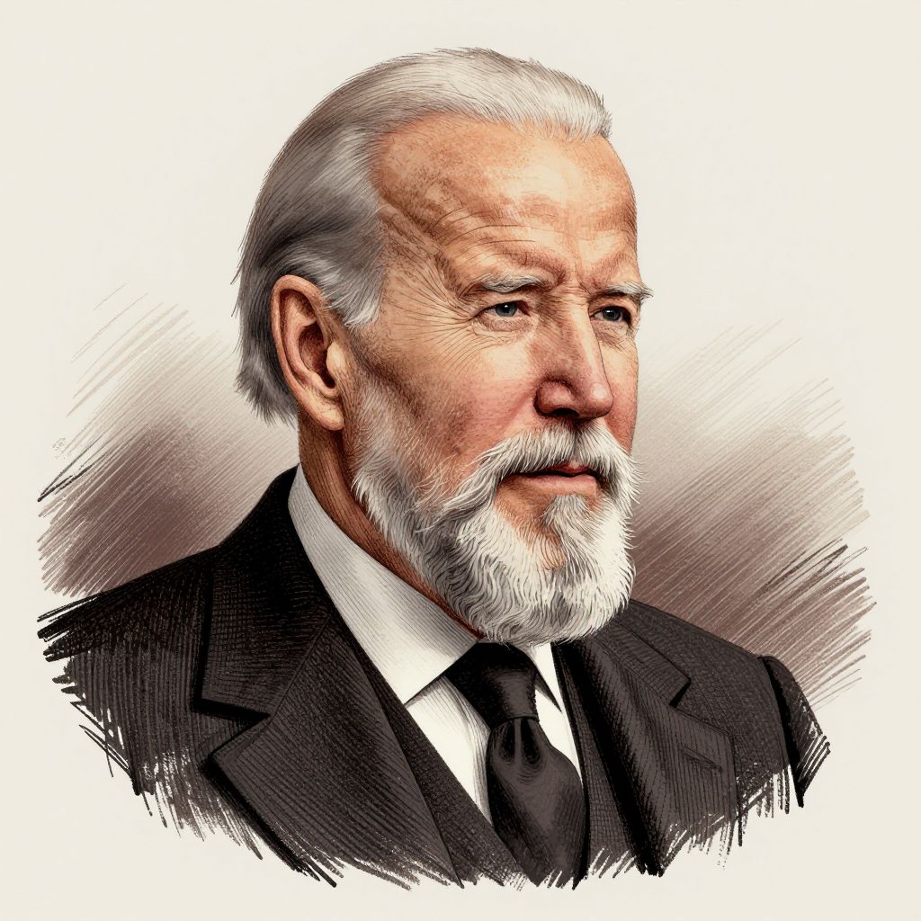 Biden beard vintage illustration, an elderly man with a distinguished gray beard and white hair, hand-drawn ink style with crosshatching, wearing classic formal attire, muted earth tone colors, atmospheric and nostalgic mood