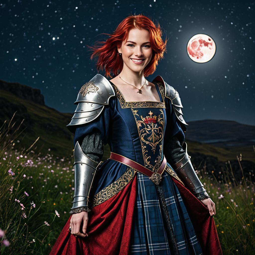 Anime Girl in Dark Blue Gown Under Moonlight