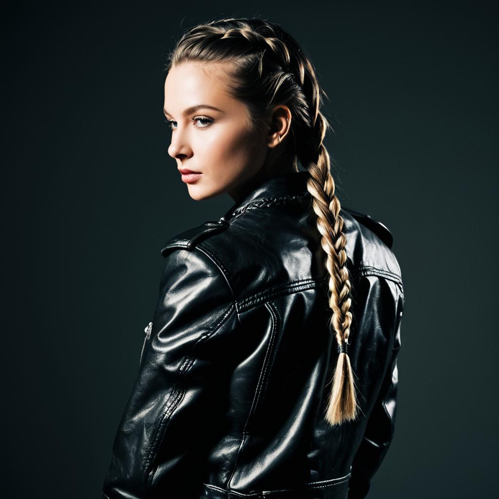 Woman with Dutch Braids and Leather Jacket