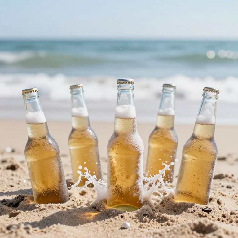 Frozen Beer Bottle Splash at Beach