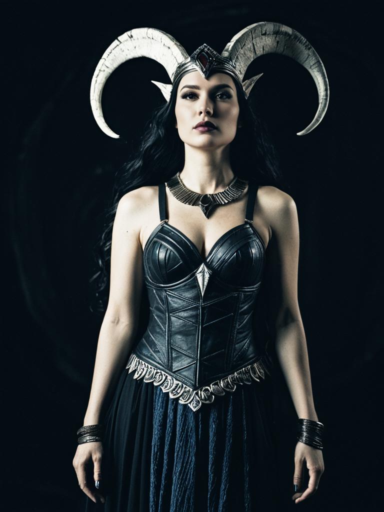 Woman in Lilith Goddess Costume, photorealistic detailed studio portrait