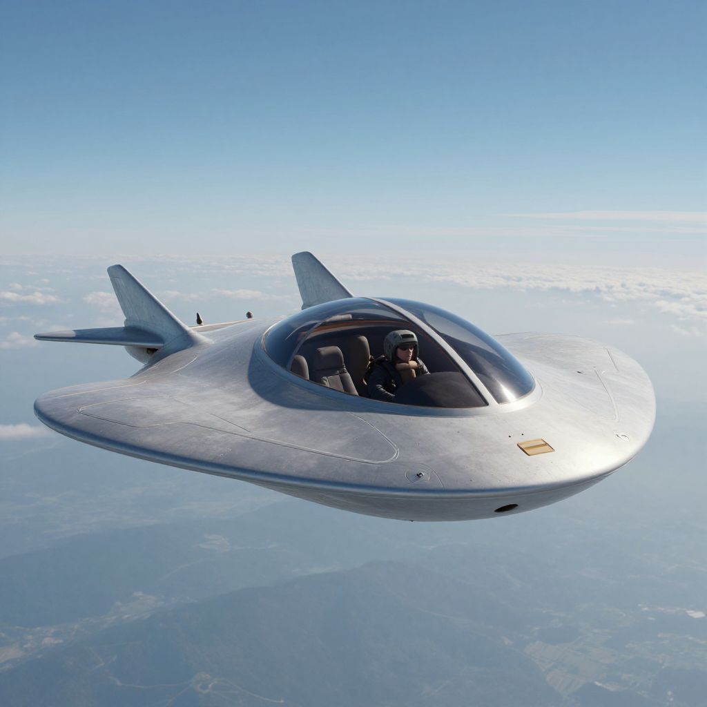 Grimoire A photorealistic rendering of the sport model flying saucer as described by Bob Lazar. Highly detailed photo.,