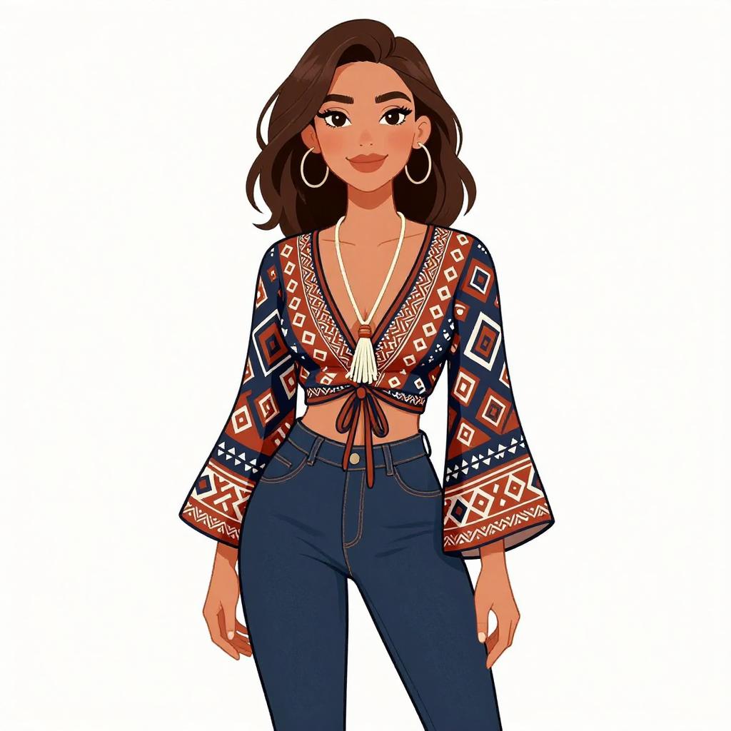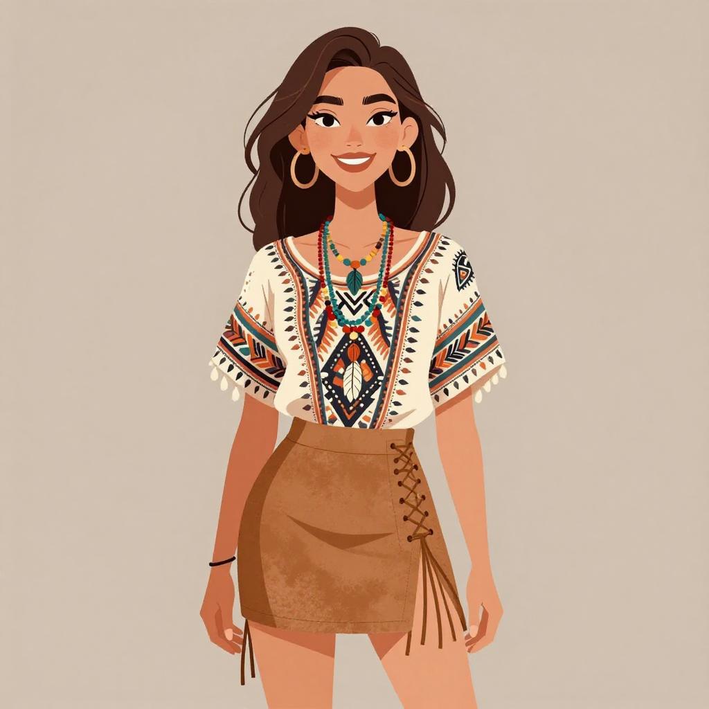 Bohemian Woman in Tribal Print Outfit