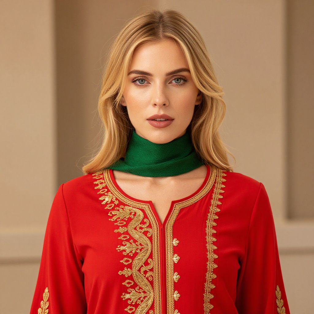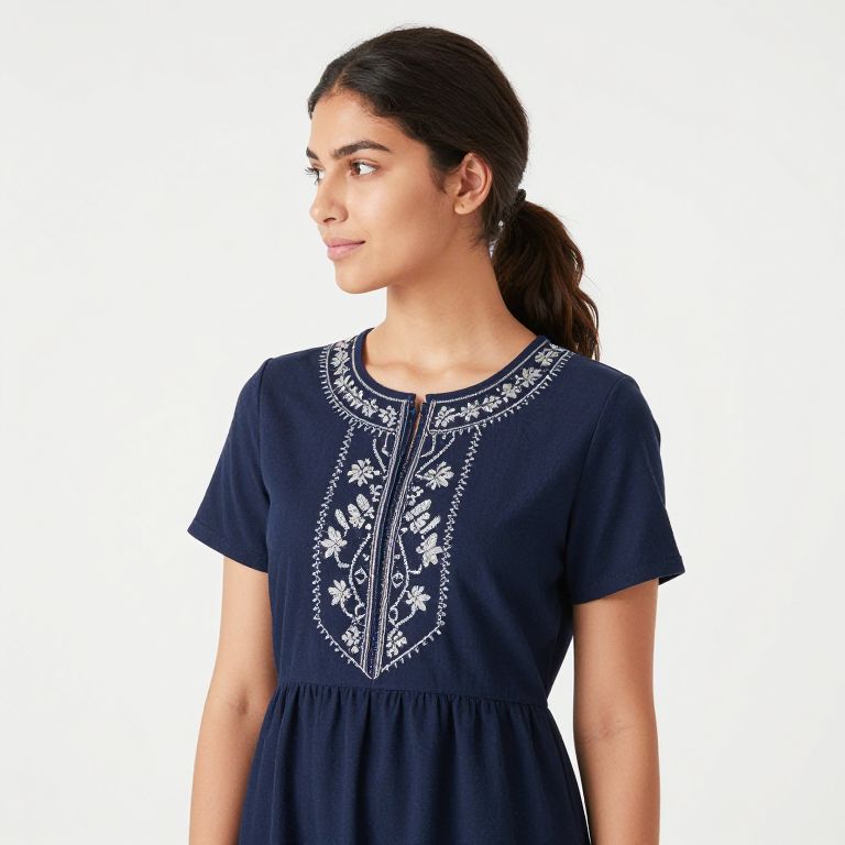 Woman in Blue Embroidered Dress